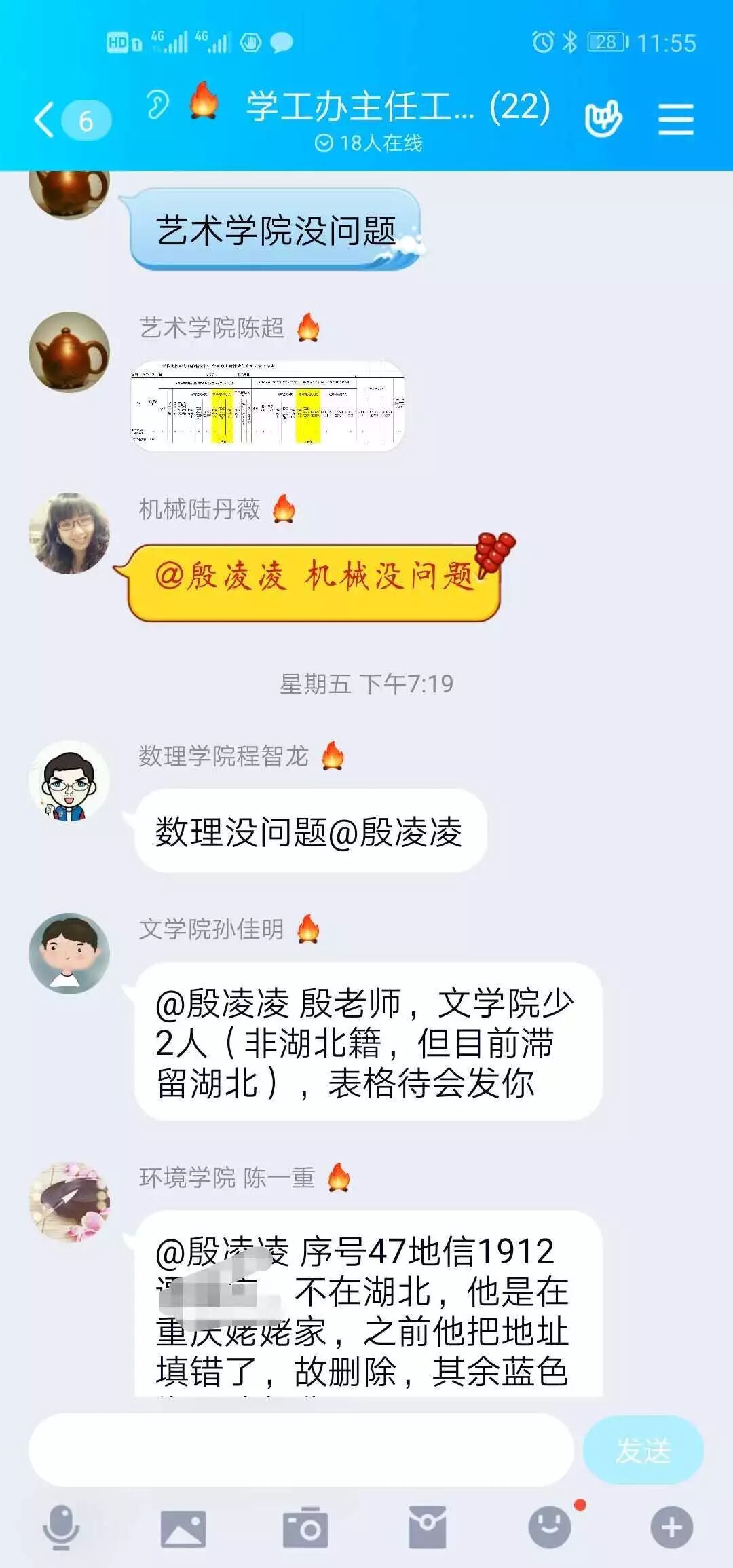 自疫情出现以来,文学院所有辅导员时刻保持“工作在线”,制作文学院学生每日疫情信息统计表,认真摸排每一个学生的情况,劝导留校的学生及时离校,并确保学生不提前返校。