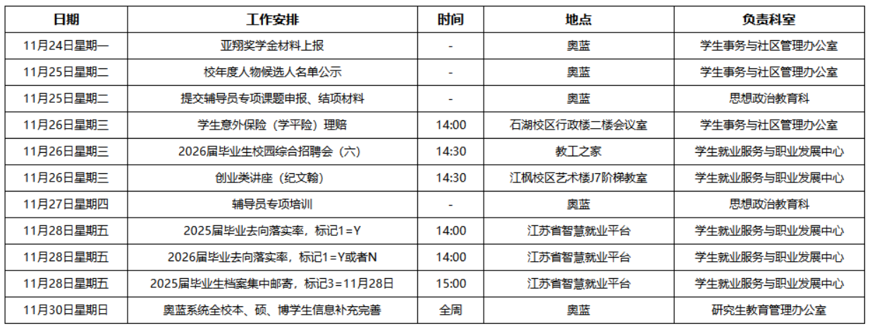 2025-2026第一学期第11周工作安排