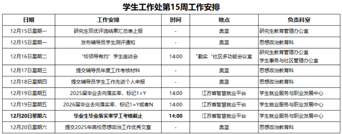 2025-2026第一学期第15周工作安排