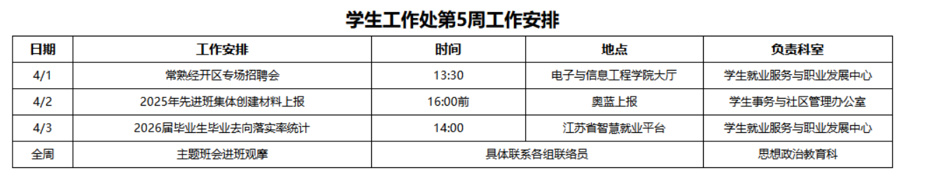 2025-2026第二学期第5周工作安排