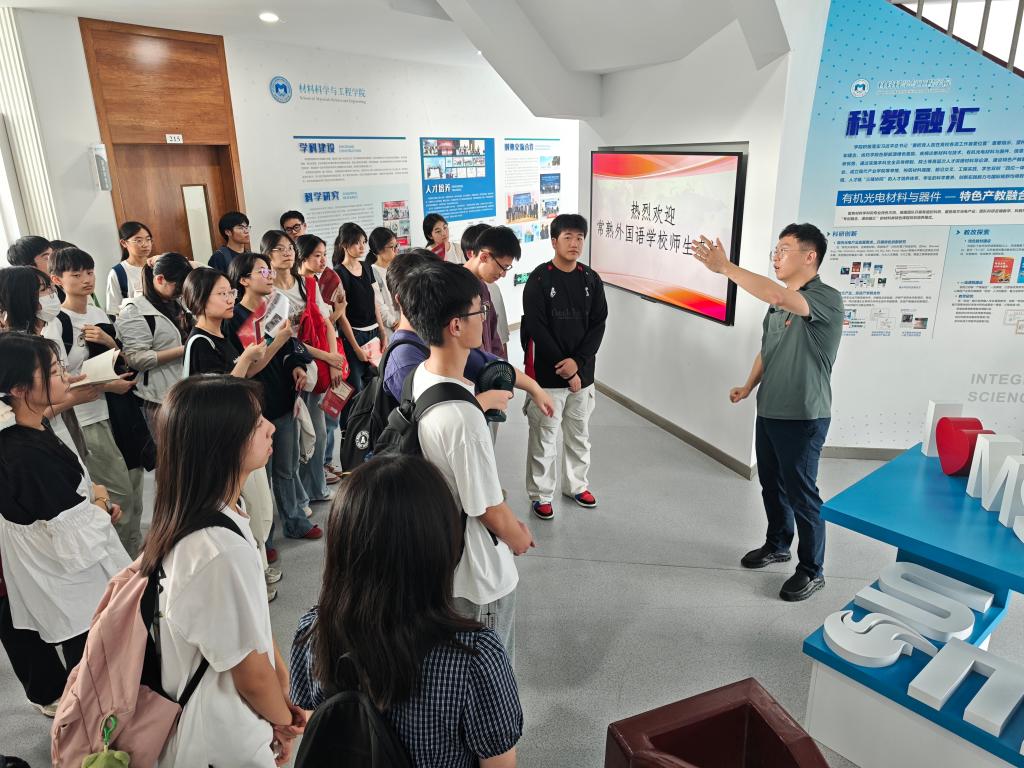 学校招生办公室组织相关学院为来访师生精心设计了活动流程,特别安排了毕业于常熟外国语学校的在校生担任志愿者,带领来访师生参观了环境科学与工程学院、电子与信息工程学院、物理科学与技术学院、材料科学与工程学院、敬文书院以及图书馆等多个校园场所。宣讲教师与志愿者为同学们带来了生动细致的讲解与演示,使高三学子对我校的学科专业、办学条件及师资力量有了更加直观和深入的了解。