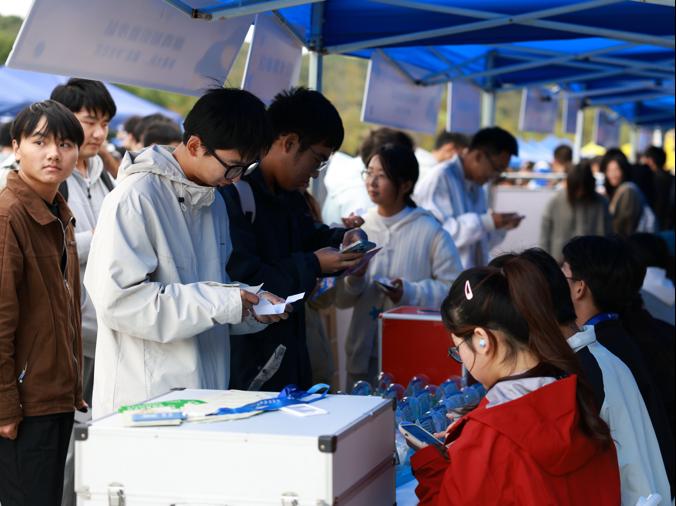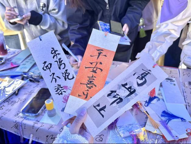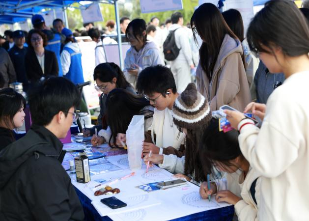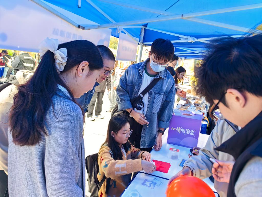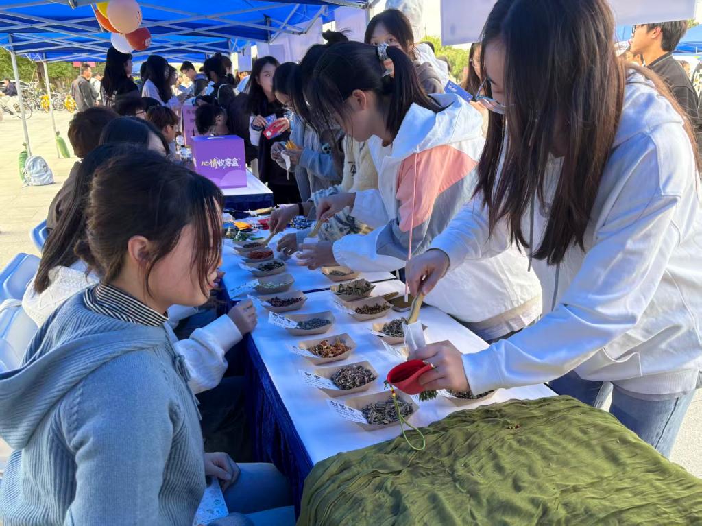生涯资助与心理关怀,助力学生成长发展。生涯资助区设置了学业规划游戏,并开展资助政策现场咨询,为学生提供个性化的学业发展和生涯规划指导,切实帮助学生解决成长过程中的实际需求;心理关怀区则设有“心情加油站”、疗愈香囊DIY等互动环节,为学生提供心理支持与压力疏导;现场还设置了民族团结知识学习展位,同学们通过趣味互动增进对民族文化的了解。
