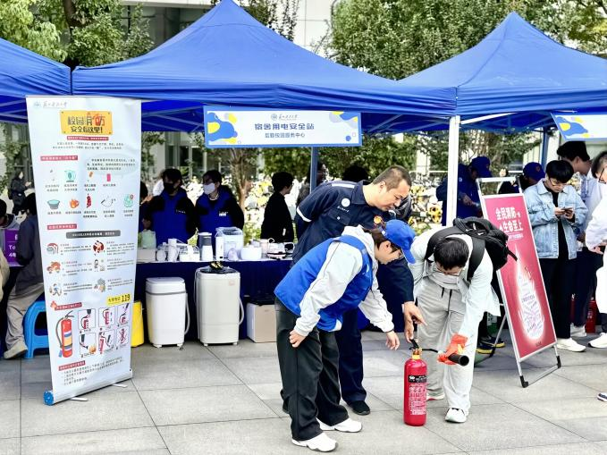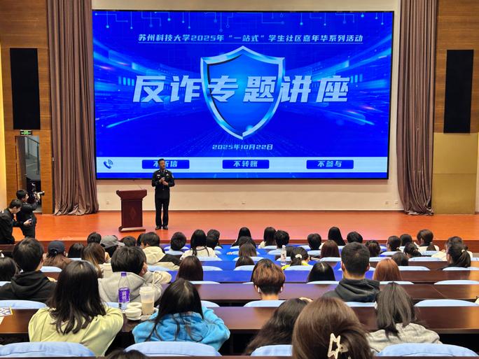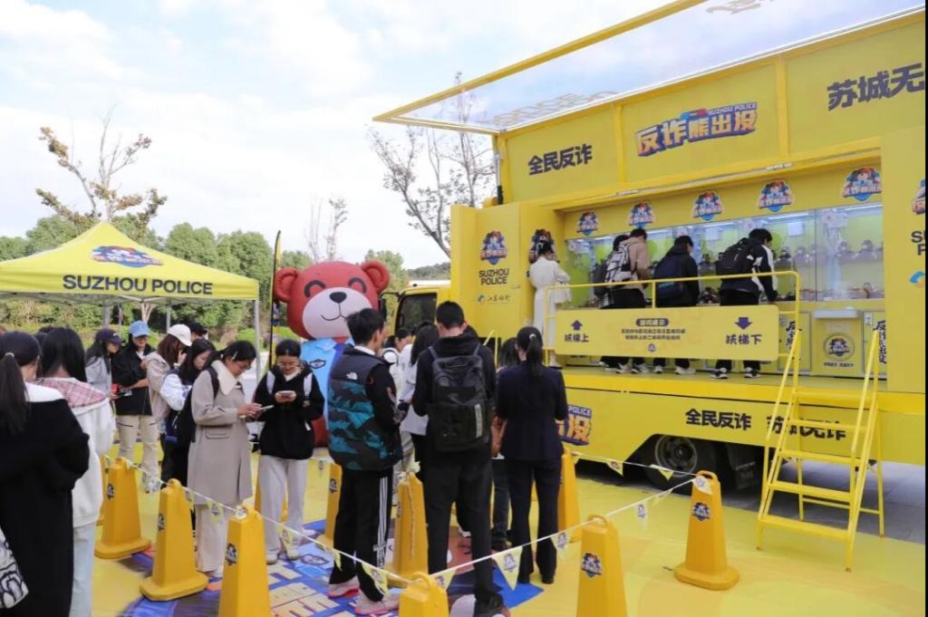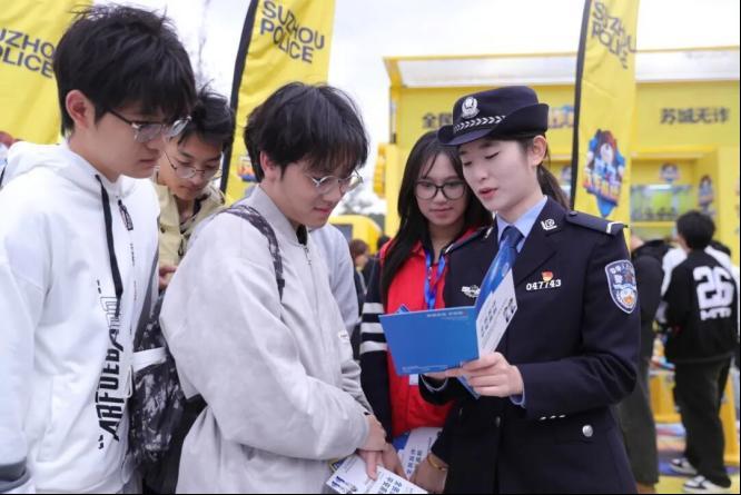 安全宣教筑牢防线,警校联动守护平安。安全知识区内,苏州市公安局举办了“反诈熊出没”品牌宣防活动,学生们通过扫码答题和趣味互动提升了防骗意识。在图书馆报告厅,警务专家为2025级学生干部代表举办了反诈专题讲座,提升学生骨干的防范能力。现场还设置了禁毒宣传、网络安全、急救技能、消防安全、宿舍用电安全等多个主题展位,为学生们提供了一站式安全教育体验。