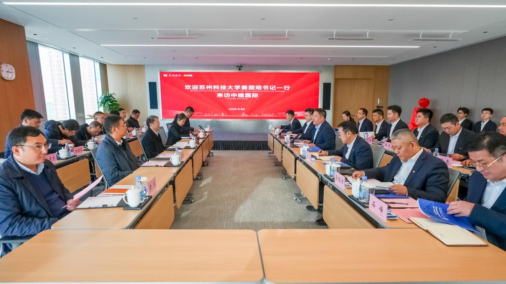 1月15日,校党委书记姜朋明带队前往中建国际建设有限公司开展访企拓岗。党委常委、副校长崔雪丽,学校相关职能部门和学院负责人参加活动。中建国际城市建设有限公司党委书记、董事长孙中杰出席活动。