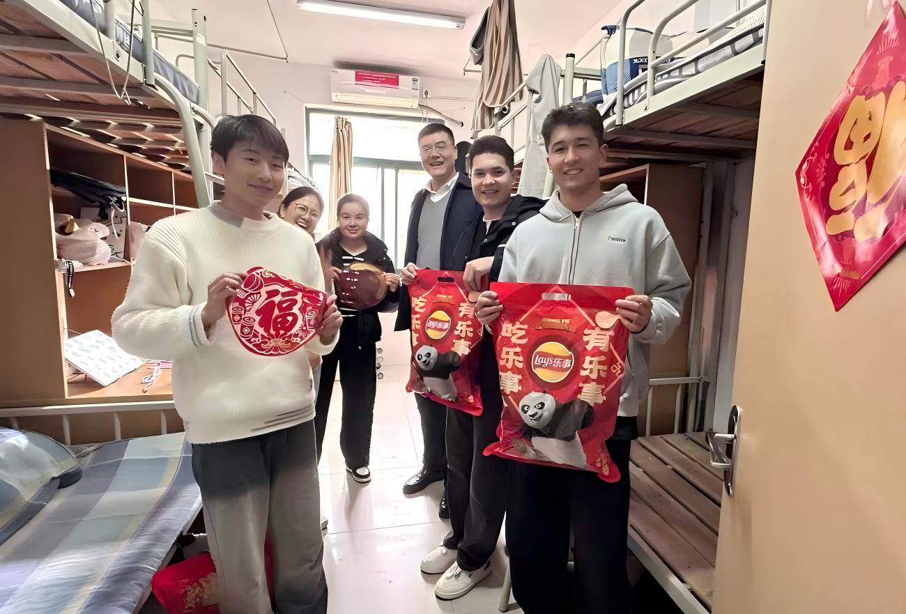 2月15日,学生工作处开展春节留校学生慰问活动,为6名除夕留校同学送上新春礼物,并致以诚挚的节日祝福。