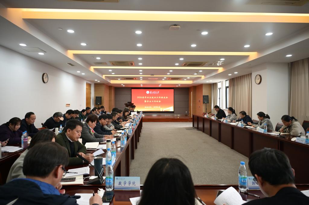 3月23日下午,学校召开2026届毕业生就业工作推进会暨学生工作例会。校党委书记姜朋明、校长顾菊平出席会议,教务处、学生工作处、研究生院和各学院党政负责人参加会议。会议由党委常委、副校长崔雪丽主持。