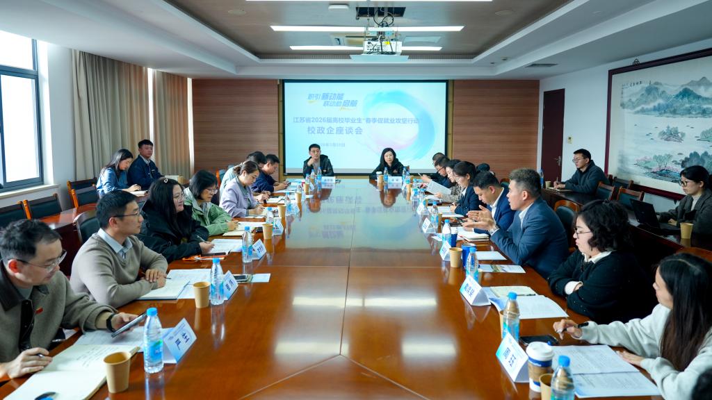 校政企协同促就业座谈会期间,省招就中心、市人社局领导,苏州银行、立讯精密等9家优质用人单位代表,与我校学生工作处及相关学院代表,围绕用人需求、深化合作等内容进行了深入交流。
